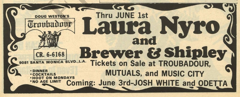 Brewer and Shipley support Laura Nyro at The Troubadour, Concert Poster in the Los Angeles Free Press 30 May 1969 (used with kind permission of Steven Finger, L.A Free Press)NW: The song “Green Bamboo” sounds like being above L.A and getting away from the craziness?